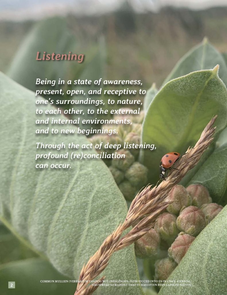 The “Listen” Garden is a place dedicated to listening, healing and creating a place of learning for future collaboration, growth and a shared path forward for all peoples.